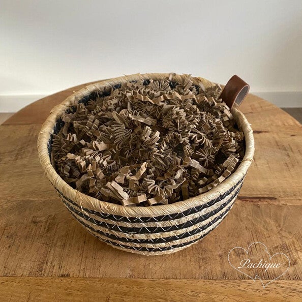 Met dit gevlochten mandje maak je zelf een leuk kraamcadeautje! Het mandje is 8 cm hoog en heeft een diameter van 18 cm.