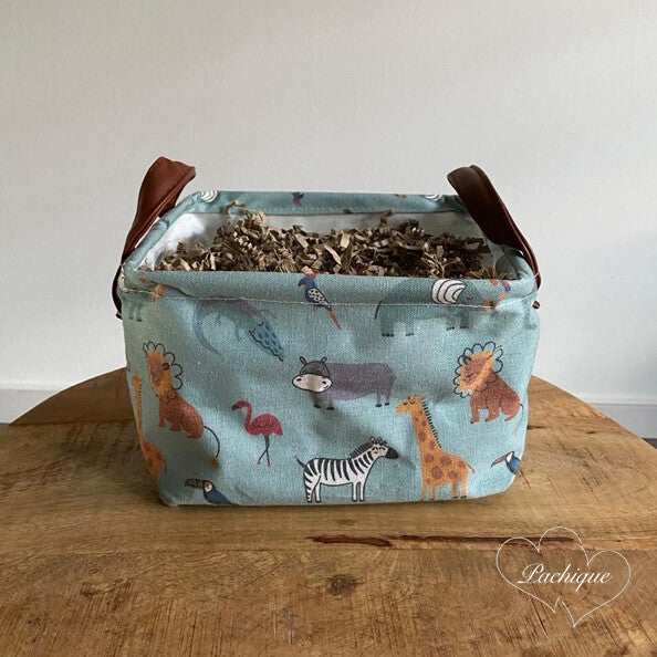 Met dit stoffen mandje maak je zelf een leuk kraamcadeautje! Het mandje is 14 cm hoog, 21 cm breed en 20,5 cm diep.